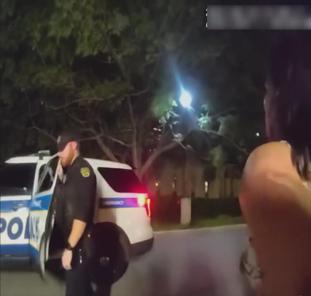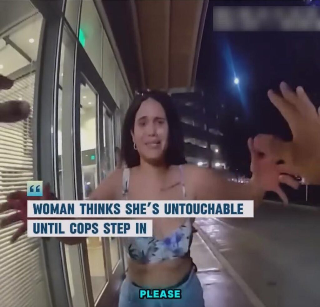 What changes the clip’s trajectory is a brief, physical moment. As officers work to bag her phone and ID and coordinate an Uber per instructions from her father, an officer states she punched him in the chest. That allegation is the pivot; the tone shifts from negotiation to custody: “You’re going to jail.” The camera doesn’t linger for drama—there’s no victory lap, just process.